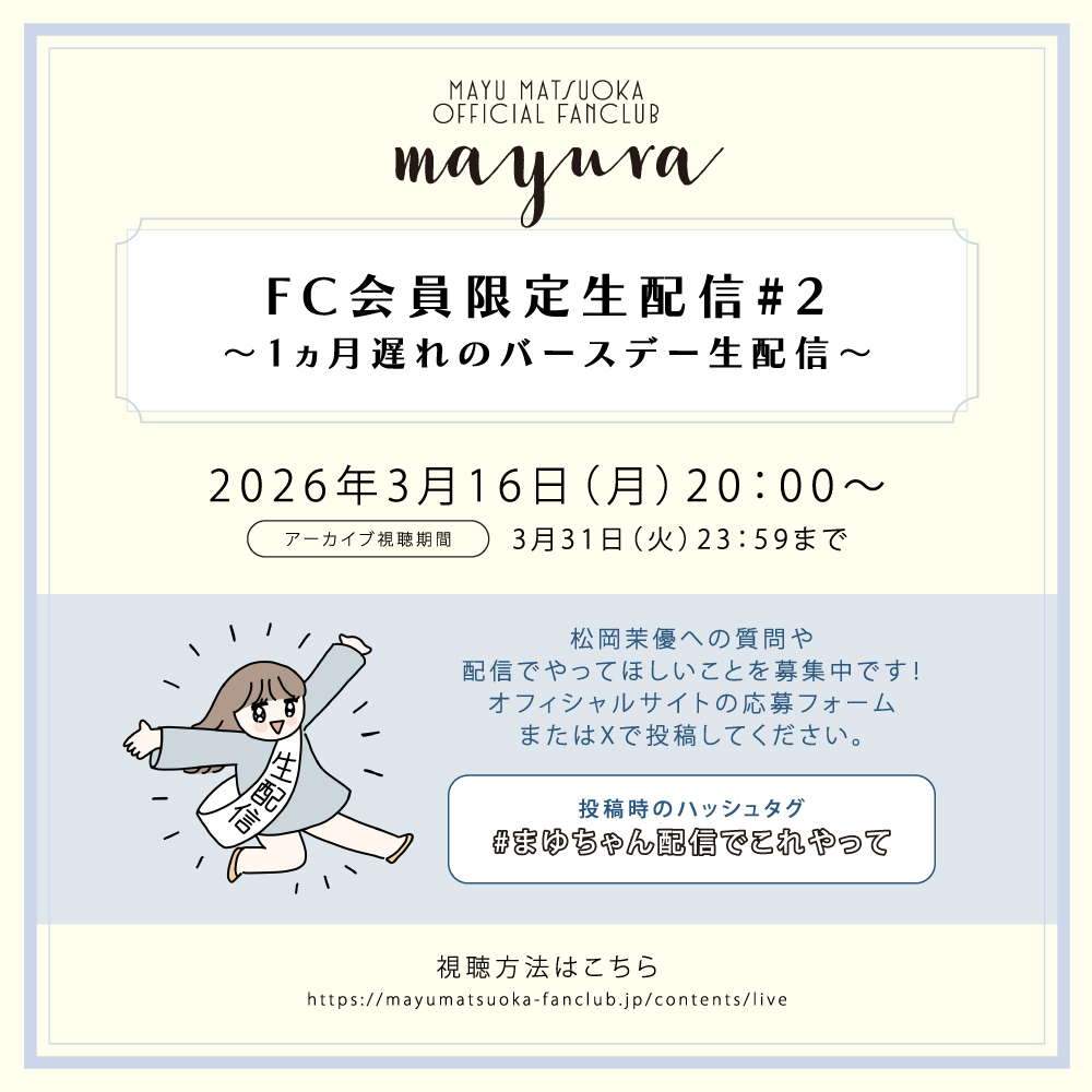 「FC会員限定生配信 vol. 2 〜1ヵ月遅れのバースデー生配信」実施決定